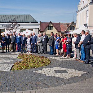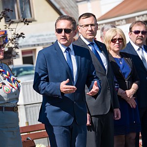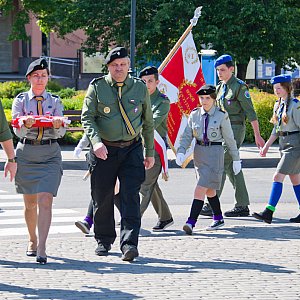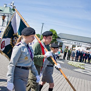W słoneczne popołudnie na wzgórzu zamkowym zebrały się władze miasta oraz zaproszeni goście - przedstawiciele rządu i samorządów, przyjaciele z miast partnerskich - Gródka Podolskiego na Ukrainie i angielskiego Melton, dyrektorzy i pracownicy miejskich instytucji, liczna grupa harcerzy. Jak zawsze na początku, po powitaniu gości, głos zabrał przewodniczący Rady Miasta Sylwester Kaczmarek