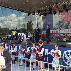 Kolejnym punktem wyjazdu był piknik na błoniach stadionu PGE Narodowego, na którym zaprezentowano polskii i amerykański sprzęt wojskowy.