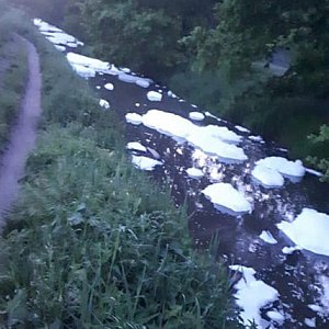 - Po przybyciu na miejsce zdarzenia stwierdzono silne wypienianie się wody na całej szerokości koryta rzeki tj. na szerokości ok. 3 m, na długości ok. kilkunastu metrów poniżej stopnia wodnego oraz w miejscach widocznych, obecność nielicznych śniętych ryb. Na powierzchni wody nie stwierdzono widocznych śladów substancji, w tym ropopochodnych. Wykonujący na miejscu zdarzenia badania wody z rzeki funkcjonariusze PSP zidentyfikowali w niej obecność niejonowych związków powierzchniowo czynnych (związki zawarte m. in. w środkach piorących) […] Wykonane badania w terenie nie ujawniły bezpośredniego zagrożenia.
