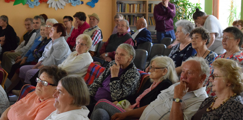 Warto nadmienić, że w trakcie spotkania pensjonariusze i goście wspólnie śpiewali hymn dzisiejszego wydarzenia przy akompaniamencie Arkadiusza Mamcarza: