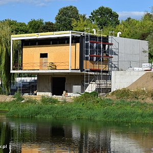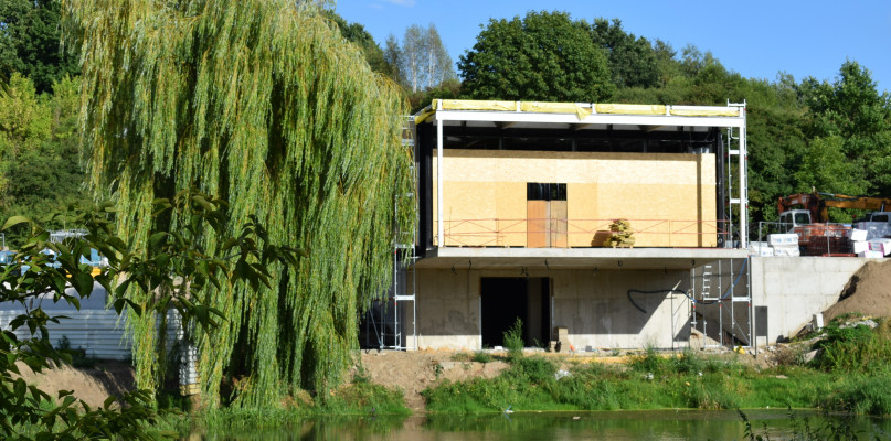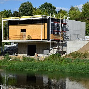 Tego lata obserwujemy postępy w budowie przystani kajakowej nad Bzurą. Inwestycja nie miała łatwego startu, pamiętamy, jak zawalił się strop, od kilku tygodni jednak postępuje zgodnie z planem i bez zakłóceń. Widać już bardzo dobrze bryłę obiektu, a także ów słynny taras na piętrze, wysunięty nad rzekę, gdzie będzie można wyjść z wnętrza kawiarni.