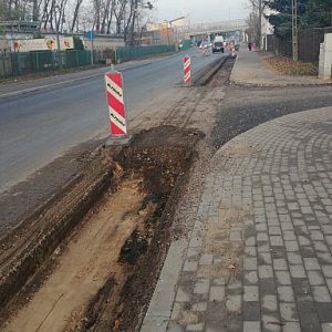 Smutne to , ale to kolejna sytuacja kiedy po remontowanym odcinku robi się kolejne prace, które wymagają zerwania swieżo położonej nawierzchni.Tak to wygląda bo asfalt jest zerwany na około 1 m szerokości od chodnika.