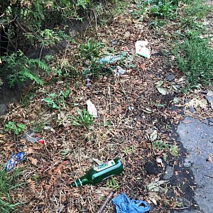 A szkoda. Bo to droga, którą wiele osób każdego dnia wraca ze stacji kolejowej do domu. Pięknie byłoby gdyby po ciężkim dniu pracy spacer dol domu mógł się odbywać w rejsowych pięknych okolicznościach przyrody. Ale to już zadanie dla każdego z nas. Przecież opakowanie po chrupkach, czy nawet butelkę można przenieść nawet sto metrów dalej do kosza na śmieci. To nic nie kosztuje. Jeśli nie brakuje odwagi do picia alkoholu w miejscu pub licznym, to dlaczego strach z pustą butelką udać się do kosza na śmieci?