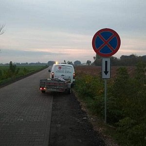 Gminny Zakład Gospodarki Komunalnej w Młodzieszynie wykonuje prace związane z oznakowaniem dróg gminnych i mostów.