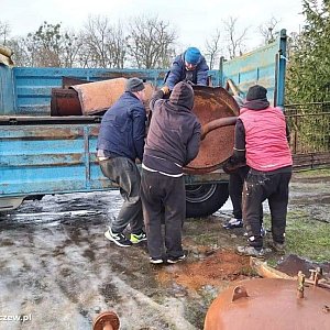 - Tym razem wsparli nas pani Jadwiga Lisicka i sąsiad Arek, który już kolejny raz pomaga nam w ten sposób, przekazując złom dla naszej jednostki. Otrzymaliśmy zbiorniki po hydroforni, która zasilała Dom Dziecka w Giżycach oraz złom z prywatnej posesji, na której kiedyś była poczta. Zbiorniki trzeba było pociąć, aby je wyjąć z pomieszczenia. W sobotę udało nam się zebrać 1,4 tony, za który dostaliśmy 1400 zł na skupie. Składamy wielkie podziękowania wszystkim darczyńcom – podsumowuje druh Bartłomiej Kobylański.