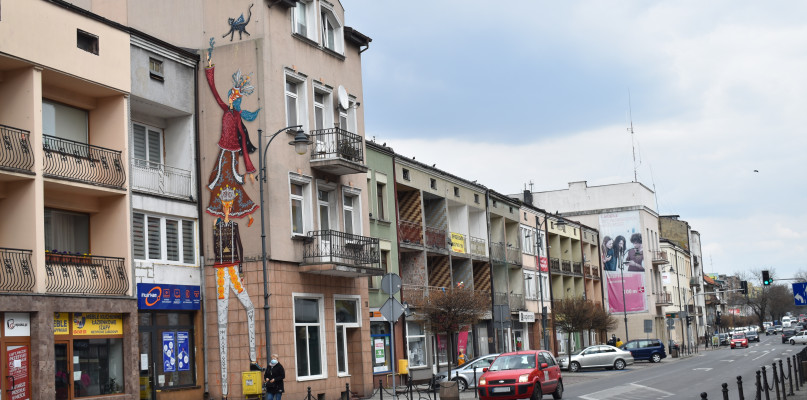 Stukali i pukali cały weekend. Przechodnie zadzierali głowy i nic dziwnego, nie są przecież przyzwyczajeni do takich widoków. Najpierw pan, potem stojąca na nim pani, a wreszcie kot, którego próbują złapać. Cała trójka stylizowana, ozdobna, nieco wschodnia, nieco karnawałowa, na pewno bajkowa, a do tego kolorowa. Mural, jaki pojawił się na wąskim boku dobrze znanej mieszkańcom kamienicy, niewątpliwie zmienił wizerunek ulicy Warszawskiej. Dodał jej uroku, barw, a wreszcie humoru. A dodajmy, że nie jest sam, dokładnie drugi bok kamienicy wypełniło drugie malowidło, tym razem bardziej ornamentalne, umowne, choć równie baśniowe.