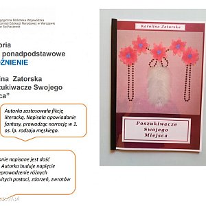 W tegorocznej edycji zgłoszone książki do konkursu były bardzo bogato ilustrowane i ciekawe. W tym roku, autorem publikacji mogła być wyłącznie jedna osoba, która musiała być autorem zarówno fotografii bądź rysunków i tekstu. Dzieci doskonale poradziły sobie z tym zadaniem. W konkursie pojawiły się również oryginalne pracę, komiks, a nawet poradnik biznesmena. Jak zauważa Elżbieta Szczypińska, taka właśnie była praca Leny Figut, która zwyciężyła w kategorii klasy podstawowe 5 - 8.