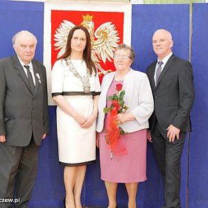 Wójt gminy Młodzieszyn Monika Pietrzyk skierowała pod adresem dostojnych Jubilatów słowa uznania i podziękowania za godne i długie pożycie małżeńskie oraz za piękny przykład dla młodego pokolenia. Podczas uroczystości, wręczone zostały medale, przyznane przez Prezydenta Rzeczypospolitej Polskiej Andrzeja Dudę, które stanowią nagrodę dla osób, które przeżyły 50 lat w jednym związku małżeńskim.