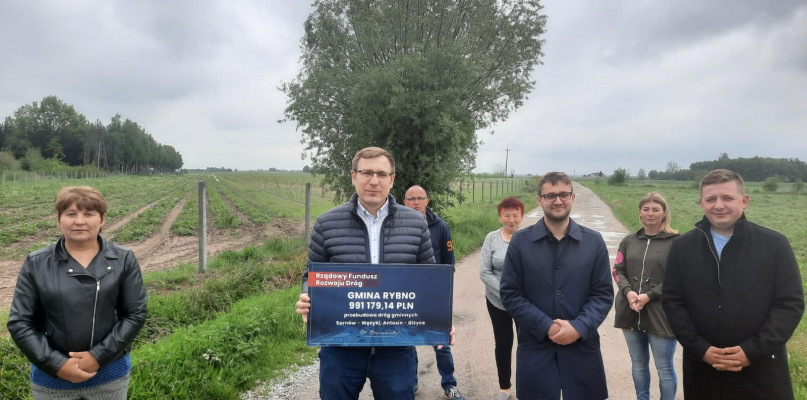 Dziś w gminie Rybno w obecności wójta Damiana Jaworskiego, radnej powiatowej Bożeny Samson, Emila Żakowskiego, sołtysa miejscowości Antosin oraz mieszkańców minister Maciej Małecki przekazał promesę na budowę dwóch dróg Sarnów - Wężyki, Antosin – Giżyce. Gmina Rybno uzyskała dofinansowanie z Rządowego Funduszu Rozwoju Dróg. Przyznane środki w kwocie 991 179,14 zł stanowią 50% wartości wnioskowanych zadań, ponieważ całkowita wartość realizacji wyniesie 1 982 358,27 zł.