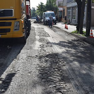 Trwa remont ulic Narutowicza i Batorego w Sochaczewie. Po sfrezowaniu przez pracowników firmy Prima warstwy asfaltu światło dzienne ujrzał bruk - kawał historii naszego miasta.
