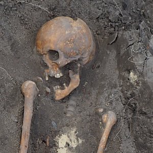 W wykopie blisko skarpy archeolodzy natrafili też na relikty fortyfikacji polowych z I wojny światowej, i, co interesujące, pod nimi, jakieś półtora metra w dół, znajdowały się kolejne średniowieczne groby.
