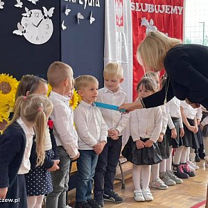 - To w tej szkole będziecie zdobywać wiedzę, to tutaj będziecie poznawać swoich przyjaciół i przeżywać chwile radości. To tutaj będziecie poznawać świat. Szkoła jest po to, żeby jak najwięcej was nauczyła i przygotowała do przyszłego życia. Gratuluję wam dzisiejszego wejścia w poczet uczniowskiej społeczności. Gratuluję waszym rodzicom, dla których jesteście dumą i radością, bo to właśnie dzięki nim, tak wspaniałych młodych ludzi, mury tej szkoły mają zaszczyt gościć. Życzę wam samych radosnych chwil przeżywanych w szkole, aby to miejsce było waszym drugim domem - podkreśla Wójt Gminy Młodzieszyn Monika Pietrzyk.