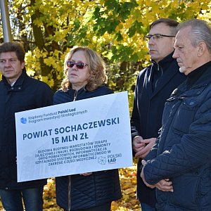 - Bardzo się cieszę, że mogę przyjąć tak olbrzymia kwotę dofinansowania rządowego. Ja nie pamiętam, żeby powiat sochaczewski jednorazowo otrzymał tak olbrzymie środki. 15 milionów złotych zostanie rozdysponowane na trzy ważne inwestycje w naszym powiecie. To są m.in. drogi , gdzie musimy dokonać remontów i przebudów. To jest również cyfryzacja Szpitala Powiatowego, a także budowa nowoczesnego budynku WTZ-u. Spotkaliśmy się w tu w Chodakowie nieprzypadkowo. Stoimy dziś przy działce na której ma powstać nowa siedziba WTZ. Uczestnikom naszego WTZ-u należą się dobre i godne warunki. Jesteśmy wdzięczni, iż dzięki zaangażowaniu i pomocy posła Macieja Małeckiego otrzymamy tak duże środki i będziemy mogli wybudować nowy obiekt. Nowa, planowana placówka o powierzchni około 800 m pozwoli w pełni rozwijać umiejętności podopiecznych – mówiła starosta.