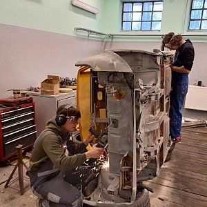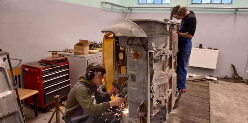 - Prężnie i z dużym zaangażowaniem działamy dalej. W ostatnich tygodniach wykonaliśmy wiele pracy: piaskowanie karoserii, wycięcie skorodowanych elementów, - prace blacharskie. W ten sposób przygotowaliśmy samochód do lakierowania.