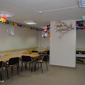 Świetlica jest jasna i czysta – to pierwsze wrażenie po przestąpieniu jej progu. Zawieszone w różnych miejscach ozdoby nadają wrażenie przytulności. Do dyspozycji podopiecznych jest duża sala, w której odbywają się zajęcia. Można tu odrobić lekcje, pouczyć się, pobawić i pograć. Obok niewielka salka z komputerami, które obecnie nie są póki co dostępne dla uczestników. Piętro wyżej znajdują się jeszcze pomieszczenia po dawnym Towarzystwie Przyjaciół Dzieci, na razie niezagospodarowane.
