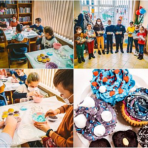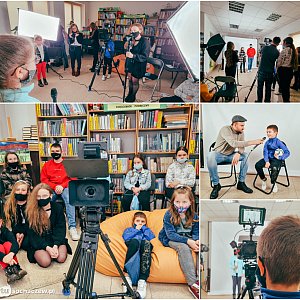 Powoli dobiega końca pierwszy tydzień SUPER FERIADY, na którą wspólnie z Panią Wójt Moniką Pietrzyk zaprosiliśmy dzieci do Gminnej Biblioteki Publicznej w Młodzieszynie oraz jej filii w Kamionie. Zajęcia odbywały się równolegle w obu placówkach. Poniedziałek w Kamionie rozpoczął się na sportowo - od treningu z profesjonalnym trenerem piłki nożnej panem Mateuszem Sikorskim, z kolei w Młodzieszynie - od słodkich warsztatów z panią Beatą Jędrzejczak. Wtorek przyniósł słodkości dla grupy z Kamiona, z kolei biblioteka w Młodzieszynie zmieniła się w wielki plan filmowy, gdzie dzieci poznawały tajniki nagrywania i montowania filmów. Każde z nich mogło poczuć się jak dziennikarz, oświetleniowiec, operator kamery, charakteryzator czy nawet kierownik planu! W tę filmową podróż zabrał wszystkich pan Radek Dulski.
