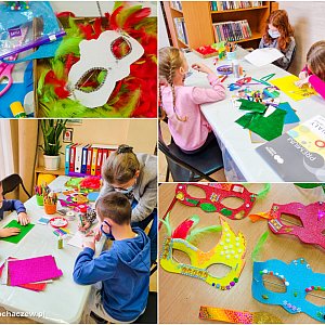 W środę dzieci z Kamiona przeniosły się do świata bajek dzięki Teatrzykowi Kamishibai - wywodzącej się z Japonii techniki czytania i prezentacji książki obrazkowej. Grupa z Młodzieszyna w tym samym czasie tworzyła piękne zimowe prace plastyczne. W czwartek zaś, plan filmowy przywędrował do Kamiona, a młodzieszyńskiej grupie dzień minął pod hasłem piór, brokatu i koloru - czyli warsztatów z tworzenia masek karnawałowych. Piątek to już tylko rozgrzewka przez weekendem i warsztaty muzyczne w filii bibliotecznej pod okiem pani Blanki i pana Jarka. W młodzieszyńskiej bibliotece zaś KGW Harde Babki dzieciom - z opowieściami o naszych lokalnych tradycjach. Nasz tydzień feryjny trwa do soboty, więc w sobotę na dzieci czekały: spotkanie z historią i członkami Stowarzyszenie Muzealna Grupa Historyczna im. II batalionu 18 pułku piechoty oraz bardzo ciekawe warsztaty rysunku i graffiti, które poprowadzi Pan Michał Stanek.