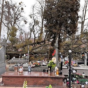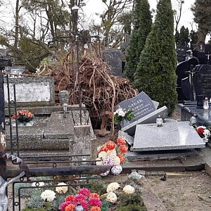 Po pierwsze- cmentarz to nie park z alejkami, po co więc drzewa? A już zwłaszcza takie drzewa jak te na zdjęciach-samo próchno. Taka sytuacja była kiedyś na cmentarzu w Trojanowie. Przez lata po każdej wichurze rodzice jechali zobaczyć, czy z drzewa rosnącego obok mogiły dziadków znów nie spadł jakiś konar i nie narobił szkód. O tonach liści zalegających na okolicznych grobach nie wspomnę. Po wielu skargach drzewa zaczęły być usuwane no i teraz jest spokój. Jedyne szkody jakie może wyrządzić wiatr to tylko poprzewracać znicze czy wazon z kwiatami.