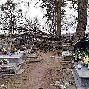 Bilans strat po wichurze, która przetoczyła się przez powiat sochaczewski 17 lutego jest ogromny. Powalone, drzewa, zerwane dachy i linie energetyczne. To nie wszystko. Żywioł nie oszczędził również nekropolii w gminie Teresin. Mocno ucierpiał zabytkowy cmentarz w Pawłowicach. Wiatr przewrócił pięć drzew, w wyniku czego zostało uszkodzonych kilkanaście grobów.