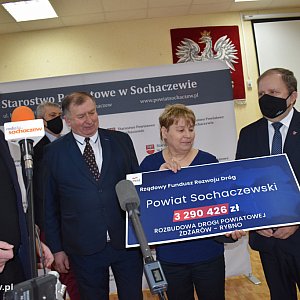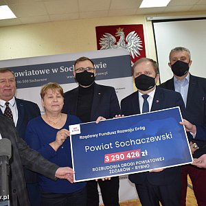 Droga powiatowa Żdzarów-Rybno otrzymała dofinansowanie Rządowego Funduszu Rozwoju Dróg w kwocie 3,3 mln. Przekazanie promesy odbyło się w Starostwie Powiatowym w Sochaczewie w obecności ministra Macieja Małeckiego, wicestarosty Tadeusza Głuchowskiego, przewodniczącego Rady Powiatu Andrzeja Kierzkowskiego, wójtów gmin Sochaczew i Rybno oraz radnych powiatowych Bożeny Samson i Sylwestra Lewandowskiego.