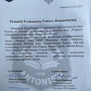 - Misja wykonana! Dziękuję każdej jednostce OSP, która od września zaangażowała się we wsparcie Ochotniczego Pożarnictwa na Ziemi Lwowskiej, dzięki Wam dostarczyliśmy dziś transport sprzętu dla OSP na Ukrainie. Przetransportowane zostały mundury, hełmy, aparaty ochrony dróg oddechowych, zestawy ratownictwa medycznego, zestaw hydrauliczny i wiele podręcznego sprzętu strażackiego. To nie koniec wsparcia dla Ukraińskiej Straży Pożarnej.