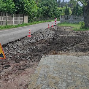 Realizacja zadania obejmuje budowę dwóch przejść dla pieszych w miejscowości Kamion Poduchowny na drogach nr 380311W oraz 380301W. Obecnie w rejonie powstających przejść dla pieszych powstały elementy chodników z kostki brukowej oraz przygotowano podbudowę pod poszerzenie jezdni w rejonie skrzyżowania. Posadowiono również słupy oświetleniowe dla montażu lamp typu LED, które będą doświetlały przejścia. Następnie będą wykonywane prace polegające na zamontowaniu znaków drogowych i urządzeń bezpieczeństwa ruchu drogowego.