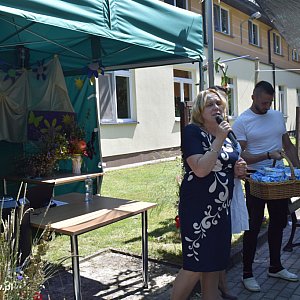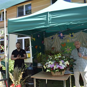 W czasie biesiady mieszkańcy, dyrekcja i pracownicy DPS podziękowali księdzu dr. Dariuszowi Kuźmińskiemu – proboszczowi parafii Młodzieszyn za wieloletnią posługę i opiekę duchową nad mieszkańcami. Na pożegnanie oprócz kosza pełnego kwiatów, mieszkańcy wręczyli własnoręcznie wykonanego anioła, aby ksiądz proboszcz o nas nie zapomniał.