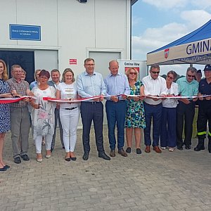 Dokonano wspólnego przecięcia biało - czerwonej wstęgi a następnie oficjalnie pobrano wodę ze Stacji Uzdatnia Wody w Lubatce i wzniesiono nią toast.