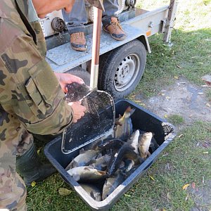 - W obecności przewodniczącego komisji zarybieniowej koła PZW Chodaków Marcina Pawłowskiego oraz członków zarządu Z.Stempniaka i W.Felczaka do wody wpuszczono 200 kg. karpia i 200 kg. karasia przekazanych przez zarząd okręgu PZW w Skierniewicach i dostarczonych ich transportem. W najbliższych dniach nastąpi druga tura zarybiania zalewu Plecewice. Z uwagi na powyższe na okres dwóch tygodnia tj. do dnia 26.10.2022 r. decyzją zarządu koła PZW Chodaków obowiązuje na tym akwenie całkowity zakaz połowu ryb –