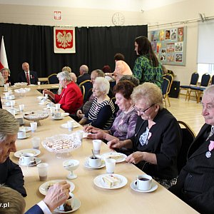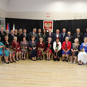 W tym roku pani wójt po raz kolejny wystąpiła do Prezydenta Rzeczypospolitej Polskiej, p. Andrzeja Dudy z wnioskiem o uhonorowanie Jubilatów medalami za Długoletnie Pożycie Małżeńskie. Życząc zdrowia, szczęścia i pomyślności w dalszym życiu oraz jeszcze wielu wspólnie spędzonych lat , w imieniu prezydenta udekorowała Jubilatów wspaniałymi medalami. Z rąk Sławomira Makowskiego, Anny Sobieraj oraz obecnych pracowników UG goście otrzymali pamiątkowe kosze prezentowe oraz kwiaty. Podczas tej miłej i ciepłej uroczystości padło wiele życzliwych słów, życzeń, nie zabrakło również wzruszeń i łez szczęścia. Na koniec szanowni goście zostali zaproszeni na tort, słodki poczęstunek oraz kawę i herbatę. Oczywiście wszyscy wspólnie zaśpiewali gromkie „sto lat” dla dostojnych Jubilatów.