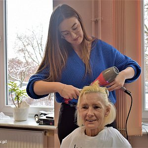 W skład mobilnej ekipy fryzjerskiej weszły uczennice Zespołu Szkół Kształcenia Zawodowego w Sochaczewie, które pod wodzą nauczycielki Żanety Ignaczak zadbały fryzjersko o seniorów. Z przeprowadzonej akcji zadowolona jest uczennica Emanuela Turek.