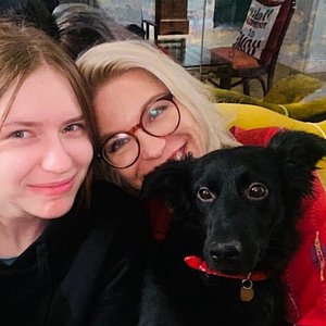 Druga uratowana suczka Sasza też znalazła nowy dom i trafiła do przyjaciółki pisarki i zarazem jej menedżerki Ady Kowalczyk-Czubak.