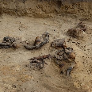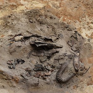 W trakcie badań natrafiono na dwa granaty – zaczepny wz. 24 i obronny wz. 33. Ze względu na obecność materiałów niebezpiecznych, na miejsce wezwana została Policja, a następnie saperzy, którzy po dokonaniu czynności służbowych umożliwili dalsze prowadzenie badań.