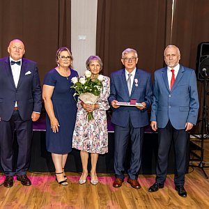 Czcigodni Jubilaci zaproszeni zostali do wspólnej fotografii, a następnie wraz z zaproszonymi gośćmi na uroczysty poczęstunek oraz miłą chwilę wspomnień. Wyjątkowy czas umilił Jubilatom minirecital w wykonaniu Bolesława Młodawskiego.