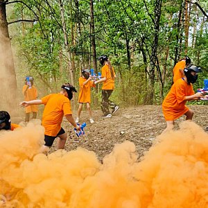 Wszyscy uczestnicy o godzinie 10:00 wybrali się do pobliskiego lasu, gdzie czekał na nich Zespół Paintball-owy Sochaczew. Specjalnie dla dzieci i młodzieży z gminy Młodzieszyn zrealizowali rozgrywki w Młodzieszyńskim Lesie.