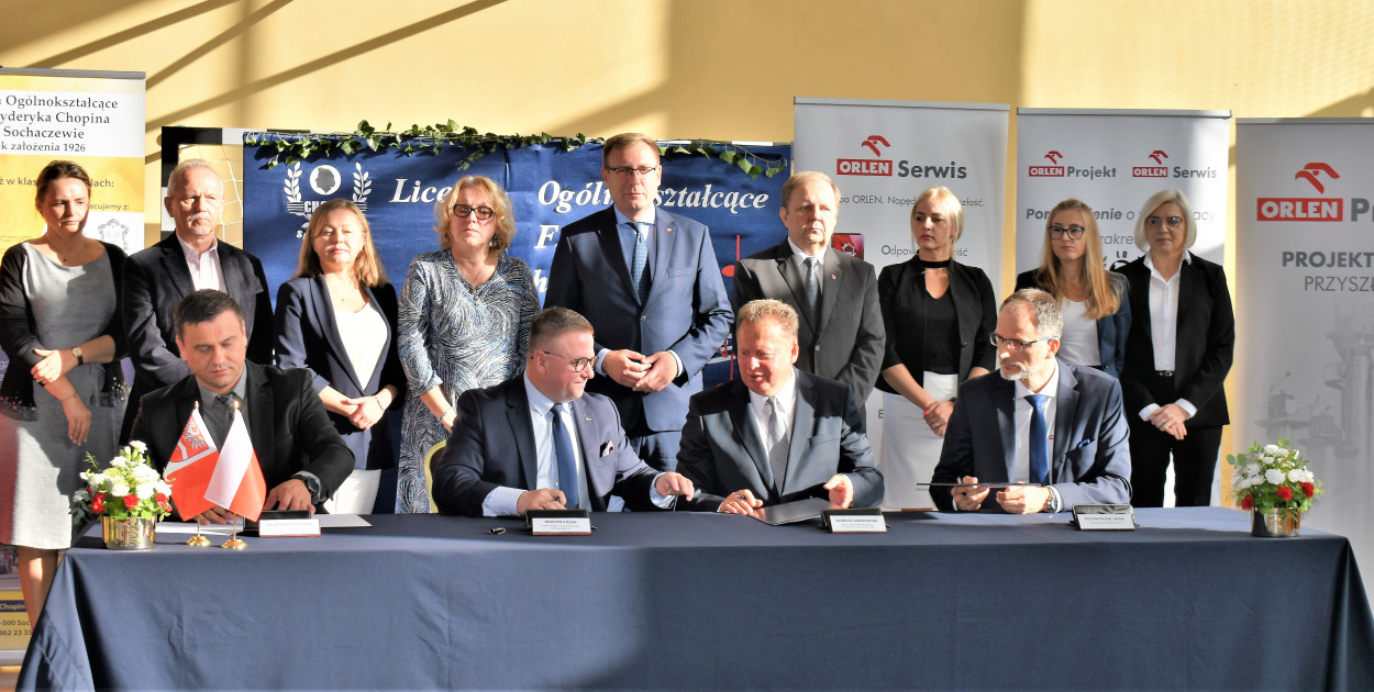 We wtorek 3 października, w Liceum Ogólnokształcącym im. Fryderyka Chopina w Sochaczewie szkoła zawarła strategiczne umowy o współpracy z dwoma firmami, Orlen Projekt i Orlen Serwis.