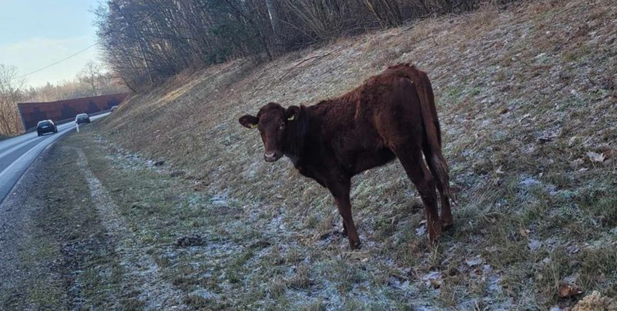 Zwierzę prawdopodobnie uciekło z gospodarstwa. W związku z tą sytuacją prosimy właściciela, który rozpoznaje swoje zwierzę o pilne zabezpieczenie cielaka, ponieważ stwarza on zagrożenie dla bezpieczeństwa i ruchu drogowego.