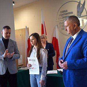 Następnie głos zabrał Michał Olton, kierownik Muzeum Polskiej Techniki Wojskowej w Warszawie, który opowiedział zebranym o swojej książce „Cichociemna elita”. Podczas uroczystości dyrektor Andrzej Grabarek wręczył specjalne odznaczenie, medal Przyjaciela Szkoły.