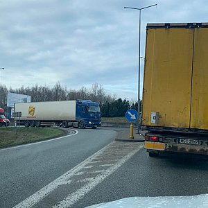 Chwilowe utrudnienia na rondzie w Kuznocinie z powodu rolników, którzy wyjechali na drogi, by strajkować.