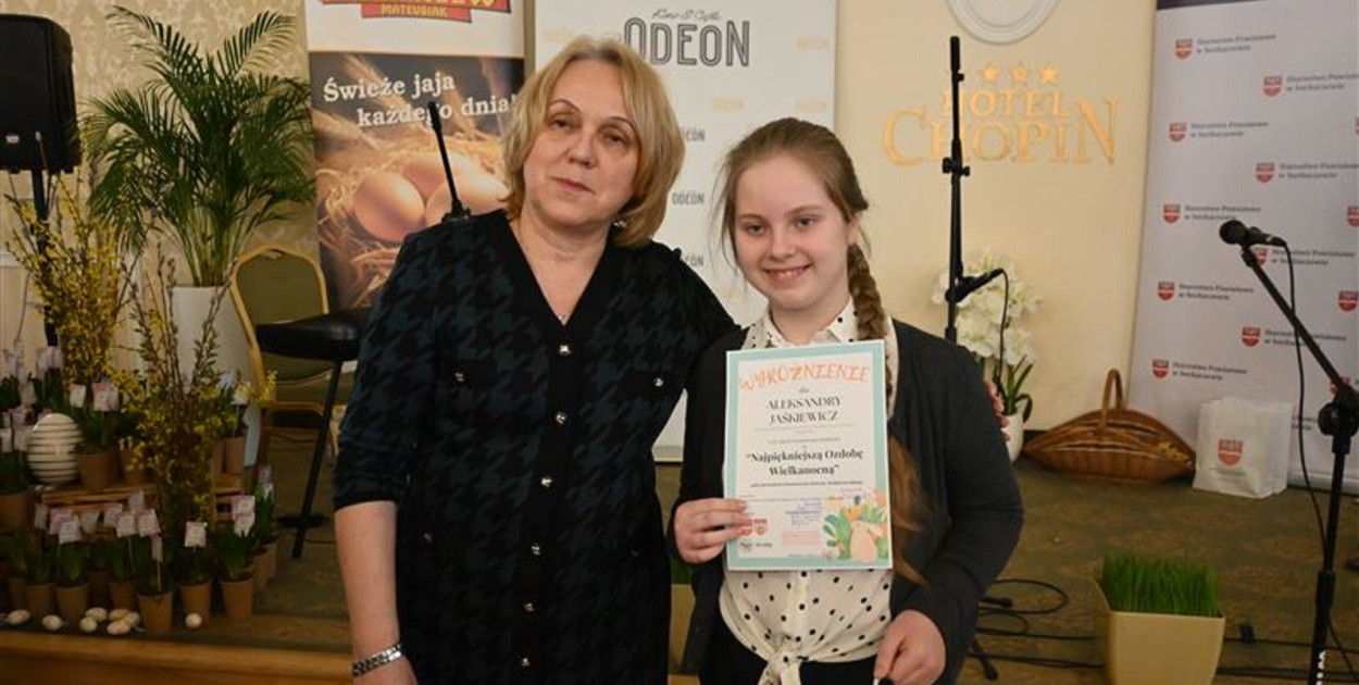 Nagrody laureatom i wyróżnionym zostały wręczone podczas Powiatowego Kiermaszu Wielkanocnego, który odbył się w minioną niedzielę, 17 marca w Hotelu Chopin w Sochaczewie. Przypomnijmy, iż zadaniem uczestników konkursu było wykonanie przestrzennej pracy np. – pisanki, ozdoby czy stroika wielkanocnego z uwzględnieniem wyraźnych elementów tradycji świąt Wielkiej Nocy, wykorzystując surowce naturalne i wtórne. Na konkurs, który od pierwszej edycji cieszy się dużym zainteresowaniem w tym roku wpłynęły 74 prace z 13 placówek oświatowych z terenu powiatu sochaczewskiego. Jury, w składzie: Agnieszka Ambroziak - dyrektor MOW, Anna Syperek – z Wydziału Promocji, Kultury i Sportu w Starostwie Powiatowym oraz Anna Przewoźna, Joanna Drużna, Ewa Grzywcza i Anna Sadzyńska z MOW oceniała prace, biorąc pod uwagę m.in. ogólne wrażenie artystyczne, oryginalność pomysłu, dobór i wykorzystanie materiałów - w szczególności naturalnych, ekologicznych i wtórnych a także wkład pracy czy estetykę pracy oraz trwałość konstrukcji. Komisja zwróciła uwagę także na walory plastyczne takie jak: kompozycja, kolorystyka, dodatki. Organizator z racji tego, iż tylko 4 prace zostały nadesłane ze szkół ponadpodstawowych zdecydował o włączenie ich do jednej wspólnej kategorii, bez podziału wiekowego.
