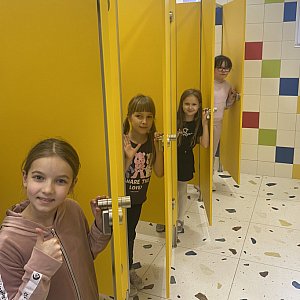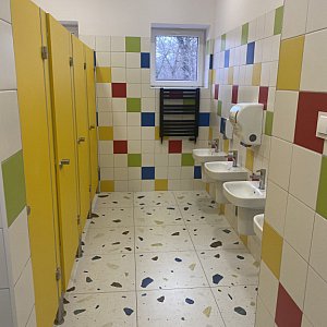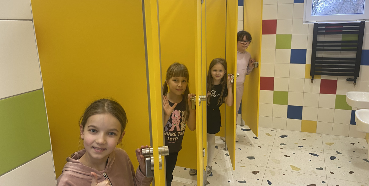 Toalety są dwie dla chłopców i dziewczynek . Chłopcy czują się komfortowo mogąc skorzystać z zamykanej kabiny a nie załatwiać swoje potrzeby przy innych użytkownikach toalety.
