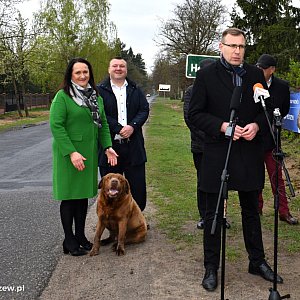 Zadowolenie z realizowanej inwestycji wyrazili także radni powiatowi Bożena Samson i Sylwester Lewandowski, a także Michał Orliński, dyrektor biura posła Macieja Małeckiego. Zakres inwestycji wyjaśnia Małgorzata Dębowska, dyrektor Powiatowego Zarządu Dróg.