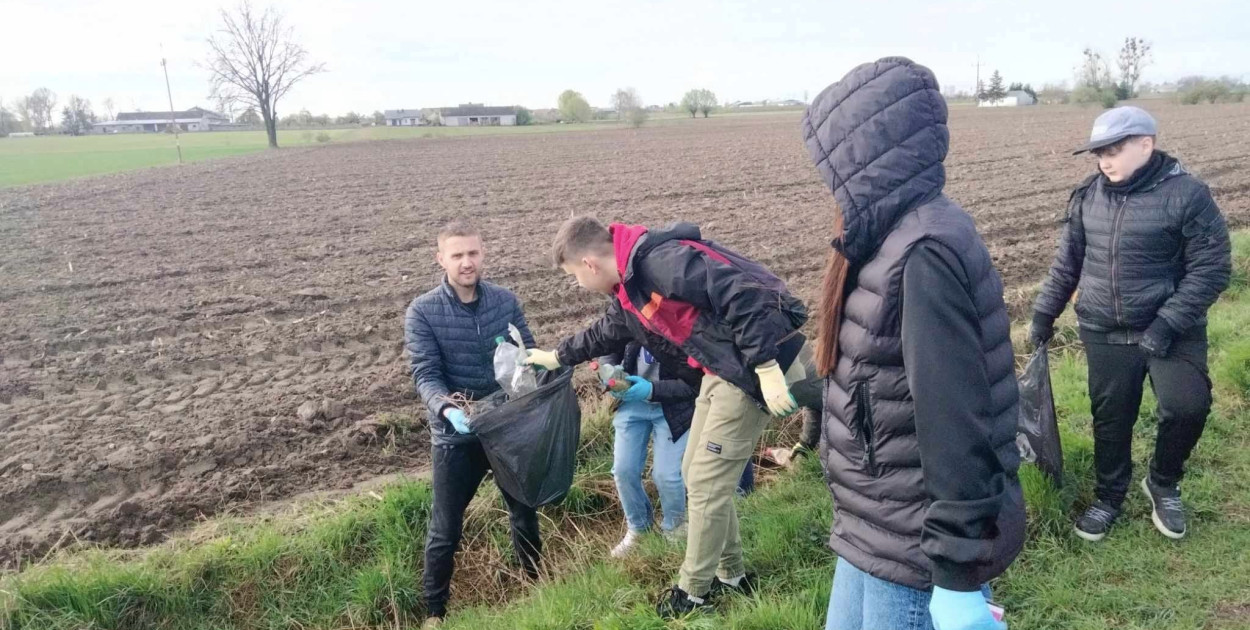 Uczniowie i nauczyciele ze Szkoły Podstawowej w Rybnie posprzątali okolicę. Rękawy zakasał także wójt Damian Jaworski.