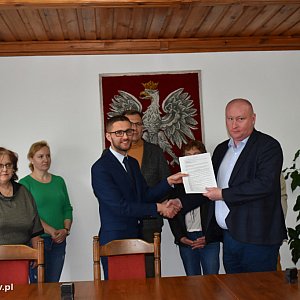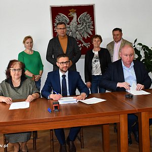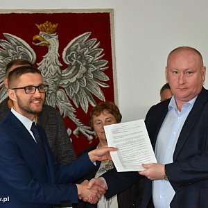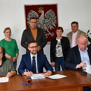 Wkrótce w gminie Rybno ruszy kolejna wielka drogowa inwestycja. Do remontu jest 20 dróg gminnych. Umowa z wykonawcą firmą DROG-BET została podpisana w poniedziałek 15 kwietnia w Urzędzie gminy w Rybnie. W wydarzeniu uczestniczyli wójt gminy Rybno Damian Jaworski, poseł Maciej Małecki, skarbnik Grażyna Dybiec, przedstawiciel firmy DROG - BET Marcin Głuchowski, a także radni gminy Rybno.