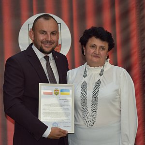Z kolei głos zabrała Olga Bystrzycka, sekretarz Rady Miasta Gródek, która przede wszystkim przekazała naszemu miastu i jego mieszkańcom życzenia z okazji dorocznego święta, na znak przyjaźni i pokoju przekazując okolicznościowe dyplomy z podziękowaniami obecnemu burmistrzowi Danielowi Janiakowi oraz dotychczasowemu Piotrowi Osieckiemu, nie mogło też zabraknąć ogromnego, wspaniałego ukraińskiego chleba dla wszystkich.