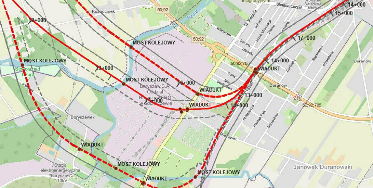 Druga część planów CPK zakładała włączenie kolei dużych prędkości w istniejący już szlak kolejowy Warszawa - Sochaczew. Z map wynikało, że w każdym z sześciu wariantów w Boryszewie nowo zbudowana linia miałaby skręcać na zachód. Takie umiejscowienie torów stawiało pod znakiem zapytania funkcjonowanie Sochaczewskiego Centrum Kultury (nasyp zaczynałby się na działce SCK), likwidacji musiałoby ulec całe centrum handlowe w tej dzielnicy tj. markety Patio Color, Biedronka, stacja paliw, a także gmach dawnej Wyższej Szkoły Zarządzania i Marketingu. Jednak najbardziej niepokojącą propozycją, w niemal każdym z przedstawionych wariantów, było poprowadzenie linii kolejowej przez środek zakładów Boryszew S.A. Przeciwko takim rozwiązaniom protestował burmistrz, ostro wypowiedziała się też rada miejska, podkreślając w przyjętym stanowisku, że pomysły zakładające burzenie kilkudziesięciu domów, ingerencję w teren zakładu będącego jednym z największych pracodawców w mieście, likwidację placówek kultury i edukacji, nie mogą liczyć na akceptację samorządu.
