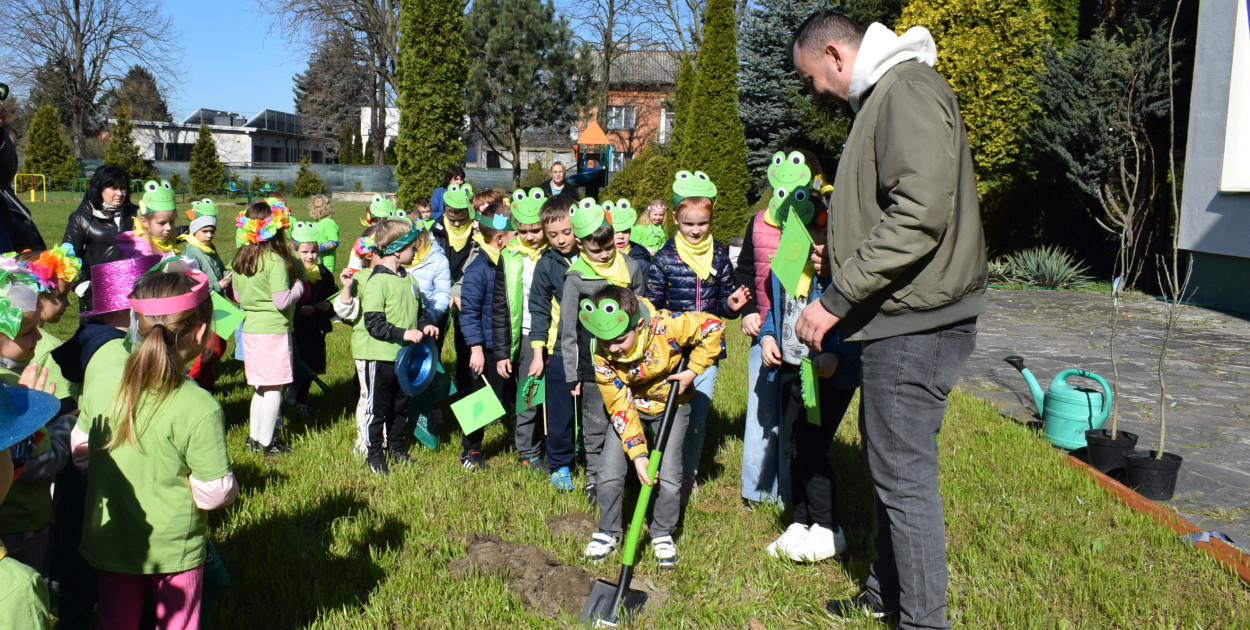 Wiosenna edycja akcji Rośniemy razem została zapoczątkowana na terenie Przedszkola Miejskiego nr nr 7. W piątek 4 kwietnia pojawiły się tam dwa młodziutkie dęby. Sadzenia dokonał burmistrz Daniel Janiak, a przedszkolaki dzielnie mu pomagały.