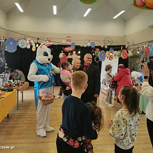 Aromatyczne ciasta i babeczki przyciągały zapachem i domowym smakiem. Na najmłodszych uczestników czekała wyjątkowa niespodzianka – Wielkanocny króliczek z koszykiem pełnym słodkości, który wzbudzał wiele radości i uśmiechów.