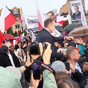 Dzisiaj (22 maja) na Placu Kościuszki w Sochaczewie odbyło się spotkanie z Karolem Nawrockim - kandydatem na Prezydenta Polski popieranym przez Prawo i Sprawiedliwość. Na spotkanie z kandydatem przyszli przekonani zwolennicy jak i wyborcy niezdecydowani. Spotkanie przebiegło w spokojnej atmosferze, bez awantur, Pogoda pokrzyżowała plany na wysoką frekwencję. Z racji opadów deszczu plac Kościuszki nie zapełnił się w całości. Prezes Instytutu Pamięci Narodowej przekonywał wyborców do poparcia jego kandydatury w drugiej turze.