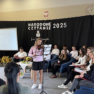 30 września w Gminnym Ośrodku Kultury w Młodzieszynie odbyła się kolejna edycja ogólnopolskiej akcji Narodowe Czytanie, która w tym roku poświęcona była twórczości Jana Kochanowskiego. Fragmenty utworów poety przygotowali i zaprezentowali uczniowie kl. VIIB Szkoły Podstawowej w Młodzieszynie pod opieką pana Janusza Wlazło.